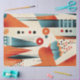 abstract geometric artwork, colourful geometric shapes, orange and blue abstract art, dynamic geometric patterns, visually engaging art, modern abstract composition, artistic geometric design, vibrant abstract image.