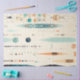 The image is an abstract artwork featuring a variety of geometric shapes and patterns arranged vertically. The shapes include circles, triangles, diamonds, and lines in various colours such as blue, orange, and beige. The patterns are intricate and symmetrical, creating a visually engaging and complex design.