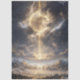 Bitcoin fantasy decoupage, celestial crypto art paper, golden coin storm design, RHDesigns paper, mixed media surreal collage, lightning Bitcoin craft print, digital currency decor, visionary crypto craft paper, mountain valley light beam art, vertical plaque tech design