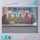 pastel chickens on windowsill, funny farmhouse bathroom art, whimsical chick photo, rustic toilet paper humor, dyed fluffy chickens indoors, cottagecore spring décor, DIY decoupage animal image, surreal farm animal scene, RHDesigns by 2ChattyChicks artwork, humorous poultry craft image