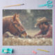 A cowboy and his horse share a quiet, intimate moment as they lay on the ground, facing each other, almost nose to nose. The cowboy’s relaxed posture suggests deep trust and companionship, as if he’s taking a break from a long journey. The horse mirrors his stillness, its gentle eyes reflecting the warmth of the bond between them. The rugged terrain beneath them adds to the authenticity of the scene, highlighting the simplicity and sincerity of their connection. There’s an unspoken understanding between man and animal, captured in this peaceful, heartfelt exchange