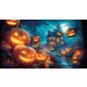 Enter a twilight world where jack-o’-lanterns flicker like sentinels and a haunted house looms in gothic splendour. This atmospheric design features glowing pumpkins with expressive faces lining a misty path, leading straight to an eerie manor crowned by turrets and glowing windows. Bats swirl above a full moon, while twisted trees stretch like curious spectators over golden leaves.