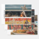 • Bottom Panel: A bold Western scene with a cowboy mid-lasso, set against a vibrant abstract backdrop of reds, oranges, and yellows.