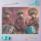 This lively panel features three anthropomorphic monkeys dressed in bold red Hawaiian shirts with yellow floral prints, each rocking out as part of a tropical music trio. With electric guitars, a full drum set, and oversized sunglasses, these primate performers bring beachside swagger and playful rhythm to the stage. Set against a pinkish-purple backdrop with cymbals and concert lighting, the scene blends humor, music, and vacation vibes into one unforgettable moment.