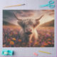 This serene decoupage paper features a shaggy Highland cow standing proudly in a vibrant field of wildflowers, bathed in the golden glow of sunset. With curved horns and soulful eyes, the cow is framed by orange, pink, purple, and yellow blossoms, rolling hills, and a dramatic sky. The painterly style and warm tones evoke peace, nature, and rustic charm—ideal for farmhouse, seasonal, and animal-themed creations.
