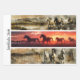 This 26x6 handsaw or sign set features three dynamic horse scenes rendered in painterly and silhouette styles. Horses gallop through shallow water against mountain backdrops in earthy tones, while the center panel captures a dramatic sunset silhouette of horses in motion. Perfect for flat-surface decoupage, rustic wall décor, journal covers, or Western-themed mixed media, this trio celebrates equine grace and countryside energy—ideal for farmhouse collections and storytelling through motion.