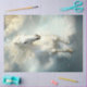 Majestic white horse in water, flowing mane ethereal motion, dreamy cloud splash background, fantasy decoupage paper design, printable horse art sheet, mystical nature-inspired craft image, elegant equine themed artwork, serene wild animal aesthetic, high-resolution decorative paper file, artistic horse scene for crafts.