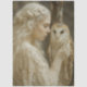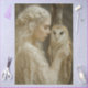 A platinum-braided figure gently cradles a barn owl, their faces close in a moment of quiet connection. Lace textures and speckled feathers blend into a softly blurred background, evoking mysticism, elegance, and nature’s calm. Perfect for decoupage, mixed media, or furniture art that celebrates soulful storytelling and ethereal beauty.
