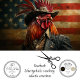 Artwork of a rooster with human-like features, dressed in a vintage military uniform reminiscent of the American Revolutionary War era. The rooster stands in front of an aged American flag. This image is interesting due to its anthropomorphic depiction of the rooster, blending animal and human elements in a patriotic context.