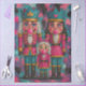 nutcracker family artwork, bubblegum nutcracker trio, whimsical holiday decoupage paper, RHDesigns mixed media panel, festive family crafting design, heart-eyed nutcracker characters, pink and blue holiday decor, splattered paint background, handcrafted furniture art, bold seasonal paper, cheeky nutcracker with bubblegum, pop art Christmas panel, layered whimsical imagery, joyful festive decor, colorful nutcracker decoupage, holiday tray design, playful winter crafting paper, RHDesigns by 2ChattyChicks, vibrant DIY holiday project, regal nutcracker family design.
