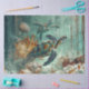 Sea turtle artwork, underwater ocean scene, marine life illustration, coral reef design, seashell and starfish accents, aquatic wildlife print, tropical ocean colors, beach-themed decor, coastal nature art, ocean-inspired wall piece, serene marine painting.