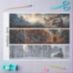 • Bottom Panel: A wintry train scene unfolds in a snowy forest, where bare trees and thick smoke create a serene, contemplative atmosphere—perfect for holiday or winter-themed crafting.
