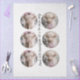 This charming set of six 3-inch circular designs features a light-coloured Highland cow with long, shaggy fur in whimsical winter scenes. Each circle showcases the cow in a snowy wonderland, adorned with pink scarves, holly-topped hats, and festive accessories. Snow-dusted trees and pink ornaments complete the cosy, magical vibe.