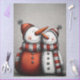 snowman pair winter red hats, cozy snowmen striped scarf embrace, RHDesigns seasonal snowman art paper, whimsical snowman couple holiday scene, festive snowman crafting supply print, snowman duo snowy gray background, vintage snowman red button design, holiday snowman friendship mixed media, Christmas snowman warm hug artwork, snowman pair winter charm decor