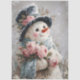 Celebrate the softer side of winter with this romantic snowman design. Dressed in a navy top hat adorned with pink roses and greenery, and holding a matching bouquet, this charming figure adds a whimsical, floral twist to classic holiday decor. Ideal for seasonal prints, greeting cards, or anyone who loves a blend of frosty charm and garden beauty.