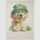 St. Patrick’s Day decoupage paper, golden retriever artwork, Irish holiday dog design, shamrock hat illustration, whimsical St. Paddy’s Day craft paper, watercolor puppy décor, festive green decoupage sheet, mixed‑media Irish theme, furniture art supplies, cute dog St. Patrick’s Day design, spring holiday crafting.