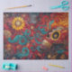 This vibrant decoupage sheet fuses cosmic energy with gothic surrealism, featuring a stylized skull adorned with golden teeth and a sunflower blooming from one eye socket. Swirling patterns of red, blue, and yellow dance around the skull like flames and stardust, while faded and bright sunflowers anchor the composition in nature’s cycle. The dynamic textures and symbolic contrasts — life and death, decay and bloom — make this design perfect for bold collage, mystical journals, or mixed media with emotional depth. Ideal for seasonal showcases, storytelling art, or layered tribute pieces with a cosmic twist.