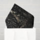 A striking decoupage paper featuring a silhouette of Bigfoot walking through a forest at sunset. The background glows with horizontal bands of orange and yellow, creating bold contrast against the dark pine trees and legendary figure. Perfect for folklore, nature, and retro-themed creative projects.