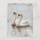 A rustic style oil painting of a swan pair gliding together across calm waters, symbolising love, serenity, and timeless elegance.