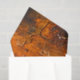 The image shows a close-up view of a textured surface, likely a piece of abstract art or weathered material. The surface features a mix of earthy tones, including browns, oranges, and blacks, with visible cracks and rough patches. The texture appears to be uneven, with some areas having a glossy finish and others being more matte. The interplay of colours and textures creates a visually interesting and dynamic composition, suggesting a sense of depth and complexity.