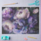 The image depicts a close-up view of several large, blooming peony flowers with petals in various shades of purple, pink, and blue. The flowers are highly detailed, with intricate textures and soft gradients that give them a lifelike appearance. The dark background contrasts with the vibrant colours of the flowers, making them stand out. This image is relevant for its artistic value and the skilful use of colour and detail to create a captivating floral composition.