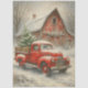 Capture the warmth of holiday tradition with this nostalgic winter scene featuring a vintage red pickup truck parked in front of a rustic red barn. Snow gently falls across the landscape, blanketing the ground, the truck, and the weathered barn roof. A freshly cut Christmas tree rests in the truck bed, evoking memories of festive gatherings and countryside charm. Bare trees frame the background, adding depth and serenity to this peaceful seasonal moment. Perfect for decoupage, scrapbooking, furniture art, or holiday décor, this design blends Americana heritage with timeless Christmas spirit.