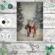 two donkeys red scarves snow, festive donkey winter forest scene, RHDesigns holiday animal art paper, whimsical donkey Christmas crafting supply, snowy evergreen donkey friendship design, vintage donkey cozy winter artwork, donkey pair snow falling background, holiday donkey mixed media print, Christmas donkey red scarf decor, donkey forest glow festive charm