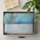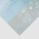 The image is a digital artwork featuring a realistic depiction of a rabbit. The rabbit is centrally positioned, facing forward, with large, expressive eyes and prominent ears. The background is an abstract mix of blue and white hues, with splashes of colour and texture that give the image a dreamy, ethereal quality. This combination of realistic animal portrayal and abstract background makes the image visually striking and engaging.
