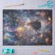 A young fairy, with wings shimmering like starlight, floats serenely in a hot air balloon adorned with celestial wonders. Surrounded by a magical forest filled with glowing mushrooms and twinkling lights, she embarks on a journey through a dreamlike realm. This enchanting artwork captures the spirit of childhood wonder and invites viewers to explore the boundless possibilities of imagination.