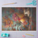 Immerse yourself in the charm of “Café Plumage,” a delightful collection where the elegance of French teatime meets the vibrant world of avian beauty. Each piece features a resplendent chicken, its feathers a burst of teal, orange, red, and purple, evoking the lively palette of a Parisian artist. Poised gracefully beside an ornate teacup, the chicken engages in the leisurely ritual of sipping tea, embodying the joie de vivre of French culture. The swirling patterns in the backdrop pay homage to art nouveau, while the whimsical fusion of fowl and finery invites onlookers to a world where every sip is a celebration of life’s colourful tapestry. Perfect for DIY crafters, this collection from RHDesigns brings a touch of sophistication and humour to decoupage, wrapping paper, canvas, poster art, or home decor.