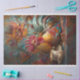 Immerse yourself in the charm of “Café Plumage,” a delightful collection where the elegance of French teatime meets the vibrant world of avian beauty. Each piece features a resplendent chicken, its feathers a burst of teal, orange, red, and purple, evoking the lively palette of a Parisian artist. Poised gracefully beside an ornate teacup, the chicken engages in the leisurely ritual of sipping tea, embodying the joie de vivre of French culture. The swirling patterns in the backdrop pay homage to art nouveau, while the whimsical fusion of fowl and finery invites onlookers to a world where every sip is a celebration of life’s colourful tapestry. Perfect for DIY crafters, this collection from RHDesigns brings a touch of sophistication and humour to decoupage, wrapping paper, canvas, poster art, or home decor.