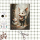 In a forest dusted with autumn leaves, a dapper pig in pinstripes offers a tray of muffins to a wide-eyed companion, both dressed in matching red plaid bow ties. Their joyful exchange, set against tall leafless trees and a painterly woodland backdrop, evokes warmth, generosity, and storybook charm. Perfect for seasonal decoupage, rustic furniture art, or mixed media storytelling, this piece blends whimsy with heart. Whether you're crafting a cozy fall vignette or curating a character-rich collection, this duo brings delight, detail, and a touch of forest magic.
