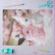 adorable bunnies, fluffy bunnies, pink bunny, white bunny, floral crowns, pink and white flowers, lollipop, red and white swirl, pink blossoms, whimsical atmosphere, RHDesigns by 2chattychicks.