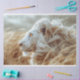 The image captures the awe-inspiring presence of a majestic white lion, its thick, flowing mane gleaming in the sunlight. Set against a backdrop of tall, golden grass, the lion’s gaze is directed off to the side, exuding a regal and contemplative aura. This magnificent creature embodies the essence of strength, nobility, and grace, standing as a powerful symbol of the wild’s untamed beauty.