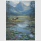 elk decoupage paper, wilderness craft design, nature-inspired mixed media, rustic pond artwork, mountain forest background, wildlife furniture art, masculine decoupage supply, outdoor scene craft paper, tranquil elk image, woodland themed DIY decor