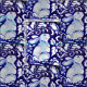 A detail from my original, copyrighted ceramic plate featuring an intricate blue and white rabbit design is the pattern on this beautiful fabric.