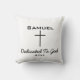 DEDICATED TO GOD/YEAR throw pillow gift...A minimalist black baby name and cross design.