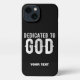 DEDICATED TO GOD COOL CUSTOMIZABLE WHITE TEXT iPhone CASE