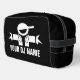 DeeJay toiletry travel bag with custom DJ name. Personalised Dopp Kit . Black and white design.