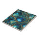 Deep Blue and Turquoise Waves with Gold Swirls Tile