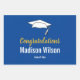 Congratulations! A white graduate cap is above the word 'Congratulations' in faux (not foil) gold script. Personalise with the graduate's name and year of graduating class. The other sheets are deep blue with a pattern of white graduation caps.