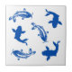 Deep blue and white Japanese vintage koi fish cute ceramic tile.