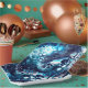 Dark blue and white bubbles pour painting and cells digital fluid art.