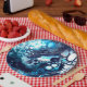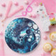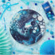 Dark blue and white bubbles pour painting and cells digital fluid art.