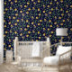 Transform your walls into a blooming paradise with our ‘Botanical Bliss’ wallpaper. This enchanting design features a delicate arrangement of yellow flowers, lush green leaves, and dainty white blossoms, all set against a rich navy backdrop. The intricate details and vibrant colours create a sense of tranquillity and elegance, making it perfect for bedrooms, living rooms, or any space seeking a touch of nature’s beauty.’