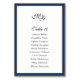 Simple Navy blue Frame. Elegant wedding Single seating plan Table Number.