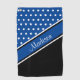 Deep Blue Polka Dot Black Diagonal Script Name Golf Towel
