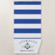Add personalised beach towels to your beach house. They are customised with a deep blue and white stripe pattern. On the bottom there's an anchor with a decorative swirl going through it. Add your name to "beach House". Please visit our store for other designs and colours.