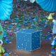 This beautiful background art depicts the glorious sheen and bright colour of deep blue water with little bubbles rising up. The background is slightly darker at the bottom fading to lighter blue towards the top. This ombre effect gives the appearance of looking under water.