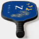 Deep Blue white gold flower butterfly minimalist Pickleball Paddle